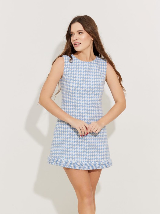 Платье женское полуприлегающего силуэта расширенное  к низу. Платье отрезное чуть выше линии талии. Верхняя часть переда и спинки с рельефами от проймы.  Спинка со средним швом, потайной застежкой молнией. По низу платья бахрома. Изделие на подкладке.