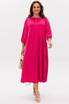 Платье женское прямого силуэта из трикотажного полотна длины миди, станет идеальным выбором для создания стильного и комфортного образа. Линия плеча спущена. Горловина v-образной формы с воротником-стойкой. По переду горизонтальный шов и боковые карманы с клапаном в нижней части. По спинке расположен центральный шов. Втачные рукава длиной 7/8 с отложной манжетой к низу добавляют легкости. В боковых швах обработаны разрезы.