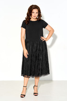 Платье полуприлегающего силуэта,  длиной maxi. Выполнено из вискозной ткани.  Платье  с отрезной, слегка завышенной линией талии. По переду лифа расположены нагрудные вытачки.  Рукав втачной короткий. Горловина округлой формы. По низу платья  - 4 волана, собранные на сборку.  В боковых швах платья расположены карманы.