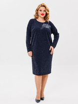 Платье из мягкой вискозной ткани (плательный креп турецкого производства) полуприлегающего силуэта. По переду обработаны нагрудные вытачки и планка до линии груди, застёгивающаяся на 4 декоративные металлические кнопки. Воротник рубашечный с отрезной стойкой. Рукав цельнокроеный, короткий, спущенный с отложной манжетой по низу.