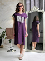 Платье из тонкого текстиля Х-образного силуэта, отрезное по линии талии. По переду и спинке лифа расположены талиевые вытачки. Юбка расклешённая с карманами в боковых швах. В среднем шве спинки предусмотрена молния. Рукав втачной длиной 4/5. Низ рукава собран эластичной тесьмой. длина рукава 51см (±1см).