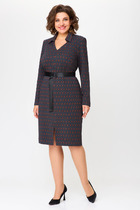 Платье из эластичного трикотажного полотна полуприлегающего силуэта. По переду обработаны нагрудные вытачки. Спинка цельнокроеная. Рукав втачной одношовный длиной 4/5 с манжетой из декоративного трикотажного довяза. В боковых швах обработаны карманы. Горловина V-оборазной формы, обработана декоративным трикотажным довязом.