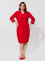 Платье из хлопка Х-образного силуэта с полуприлегающим лифом. Платье отрезное по линии талии. Перед лифа с рельефами, выходящими из плечевого шва. В центральном шве лифа ряд навесных петель с декоративными пуговицами, спинка лифа с талиевыми выточками. Горловина V-образной формы, рукав втачной, короткий. Застёжка в боковом шве на потайную тесьму-молнию.