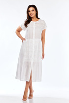 Платье из тонкого текстиля Х-образного силуэта, отрезное по линии талии.