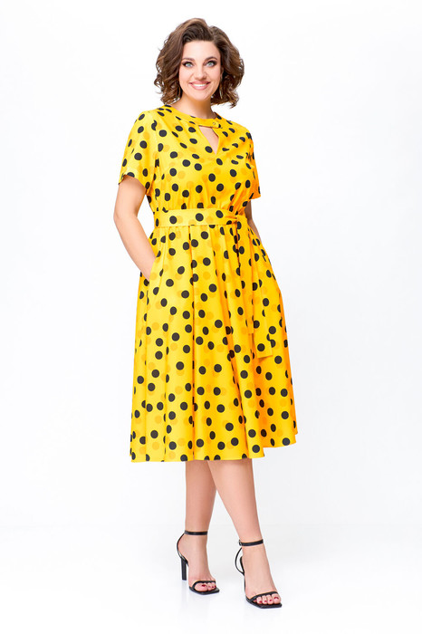 Платье из тонкого текстиля Х-образного силуэта, отрезное по линии талии.