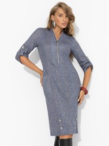 Платье полуприлегающего силуэта из мягкой шифоновой ткани на трикотажной подкладке. Полочка с отрезными рельефами, спинка с центральным швом и рельефами. Горловина округлой формы. Рукав втачной, формы «колокол», по окату с лёгкой сборкой, длиной 34 см.