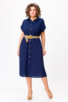 Платье женское, прямого силуэта, с цельнокройным рукавом, длинной 7/8.По переду ассиметричный, фигурный подрез , оформлен воланом и отделочной тесьмой. По спинке средний шов. Вырез горловины круглой формы с тонкой, подрезной бейкой.