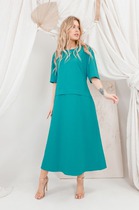 Элегантное, нарядное платье А-образного силуэта. Рукав выполнен из плотной сетки с напылением ФЛОК. Перед платья также декорирован ФЛОКОМ.