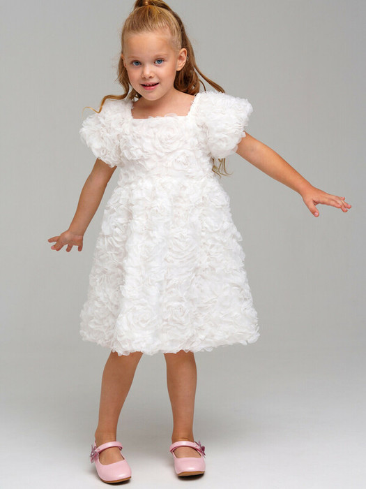 Платье детские нарядное из поплина для девочки. Легкое, воздушное и комфортное. Декорировано цветами из сетки. Застежка на потайную молнию.