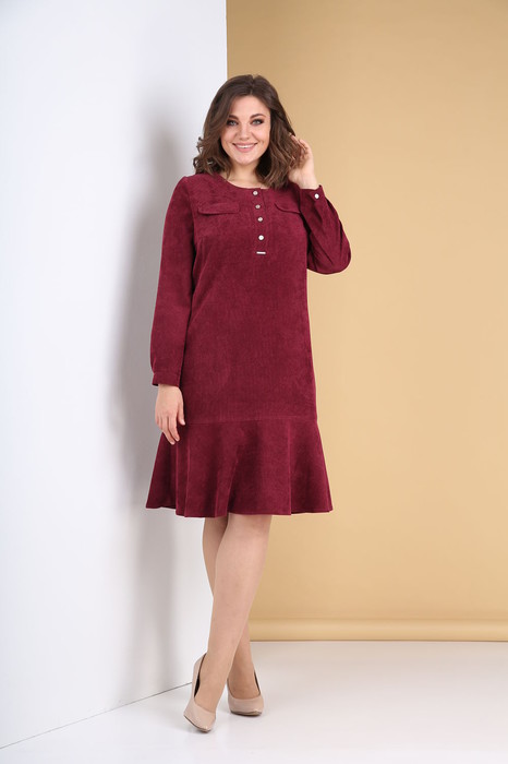 Привлекательное платье полуприлегающего силуэта с воланом по низу хорошо дополнит Ваш гардероб. Платье выполнено из стрейчевого вельвета в мелкий рубчик. Модель сочетает в себе спортивный и романтический стили, и вместе с модным вельветом выглядит актуально и стильно.