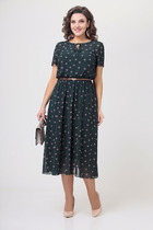 Женское платье из трендового в этом сезоне вельвета прекрасно подойдёт как для ежедневных образов, так и для различных мероприятий. На переде обработаны кокетки, стилизованные накладные карманы, нагрудные вытачки, рельефные швы, застёжка-планка на 4 петли и пуговицы, карманы с листочками, шлица в среднем шве. Спинка с кокеткой, средним швом, талиевыми вытачками. Рукав втачной, одношовный, с цельнокроеной манжетой и застёгивающейся патой. Воротник стояче-отложной со стойкой. Материал стрейчевый. Металлическая фурнитура может отличаться от представленной на фото. Длина от центра горловины спинки до низа для размеров 52,54,56 — 105 см; для размеров 58,60,62,64 — 106 см.
