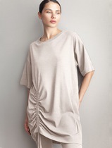 Платье женское полуприлегающего силуэта,со спущенным плечом. Перед цельный с планкой на петли-пуговицы до талии. По переду расположены накладные карманы в области груди и в области бедер. Горловина округлой фомы, в боковых швах расположены разрезы. К платью прилагается ремень.