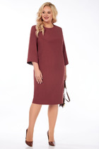 Платье женское полуприлегающего силуэта длиной мидакси. Платье с круглой горловиной и со спущенной линией плеча. Нижняя часть плеча, переходящая в цельнокроенный короткий рукав, обработана притачной манжетой. На верхней части переда платья обработаны нагрудные вытачки. Платье с центральной застёжкой на петли и натуральные пуговицы, на притачной планке, обработанной до линии талии. Верхняя часть спинки цельнокроенная. Нижняя часть переда и спинки цельнокроенные. В боковых швах, в области бедер обработаны карманы. По линии талии расположена эластичная резинка, регулирующая прилегание. В комплект к платью входит плетёный декоративный ремень.