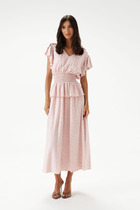 50:Длина платья по спинке – 123,5 см (±3,0 см) Ширина на уровне глубины проймы – 57,0 см (±1,0 см), Ширина на уровне линии талии – 61,0 см (±1,0 см), Длина рукава – 21,0 см (±1,0 см), Ширина рукава – 20,0 см (±1,0 см , Длина плеча – 11,0 см (±0,5 см) .