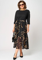 Платье женское полуприлегающего силуэта на подкладке, отрезное по линии талии, двухцветное. Платье нарядное.