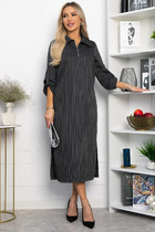Красивое платье приталенного силуэта из легкой ткани - ниагара. Горловина оформлена отложным воротником на стойке. По переду выполнена планка с застежкой на петли и пуговицы. Длинный втачной рукав, оканчивается притачной манжетой. В боковых швах функциональные карманы. Модель отрезная по линии талии, присобрана на эластичную резинку. Тканевый пояс дополнительно акцентирует талию. Модель прекрасно дополнит ваш гардероб.