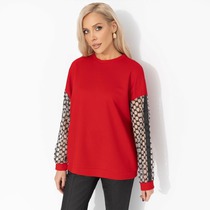 Полуприлегающее платье с узором прямого покроя, с вывезаной горловиной прямой формы.Платье длиной до середины бедра. Рукав втачной прямого покроя.