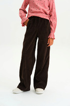 Стильные джинсы для девочки. Модель с зауженным кроем Slim fit и удобной средней посадкой. Пояс на резинке с розовой декоративной завязкой. Сзади — два кармана, один из которых украшен розовым принтом. На штанинах — яркий и милый принт с изображениями кошек и следами лапок. Вся отделка — в анималистичном стиле: пояс, карманы и низ брюк декорированы чёрно-белым принтом.