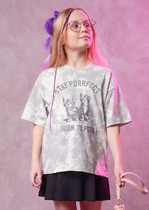 Детская футболка оверсайз для девочки. Модель выполнена из эластичного хлопкового трикотажа джерси. Спереди расположены красочные нашивки в виде цветов. Горловина круглая. По низу эластичная резинка.