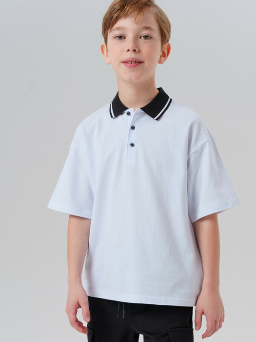 Классическое белое оверсайз поло с коротким рукавом для мальчика