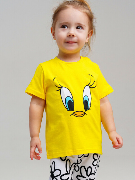 Футболка детская для девочки. Высокое содержание хлопка. Благодаря наличию эластана в составе ткани изделие держит форму и меньше мнется. Застежка на кнопки на плече.  Модель выполнена из качественного и приятного на ощупь трикотажа.