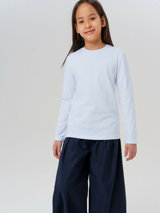 Футболка белая с длинным рукавом для девочки-школьницы