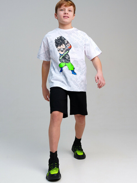 Футболка оверсайз для мальчика подростка. Высокое содержание хлопка. Благодаря наличию эластана в составе ткани изделие держит форму и меньше мнется.  Модель выполнена из качественного и приятного на ощупь трикотажа.