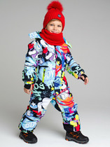 Комбинезон из футера. Застежка на молнию, защитная планка и текстильный клапан. Декор в виде очков.
