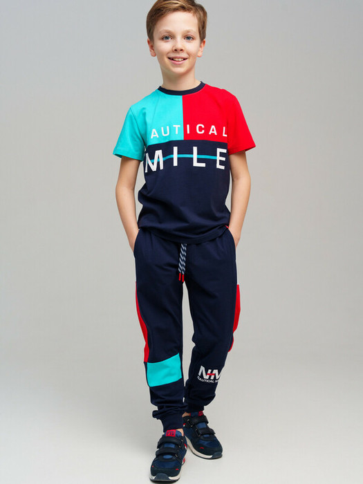 Костюм для мальчика подростка. Комплект: футболка, брюки. Высокое содержание хлопка 95%. Штаны на резинке со шнурком. Боковые карманы.  Модель выполнена из качественного и приятного на ощупь трикотажа.