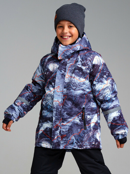 Куртка зимняя из мембранной ткани 5000*5000. Линия Nord - высокая степень теплозащиты. Температурный режим до -25С. Материал верха с ветрозащитным и водоотталкивающим покрытием. Внутренняя и внешняя ветрозащитные планки. Два боковых кармана на липучке. Внутренний карман. Потайной карман на молнии на левом рукаве. Подкладка - флис. Съемный капюшон с креплением на кнопках. Низ рукава на эластичном манжете с отверстием для большого пальца, регулировка ширины липучкой. Текстильный клапан для защиты подбородка при застегивании молнии. Светоотражающие элементы. *температурный режим является рекомендованным, необходимо учитывать уровень активности ребенка и многослойность поддевочной одежды (термобелье, флис).