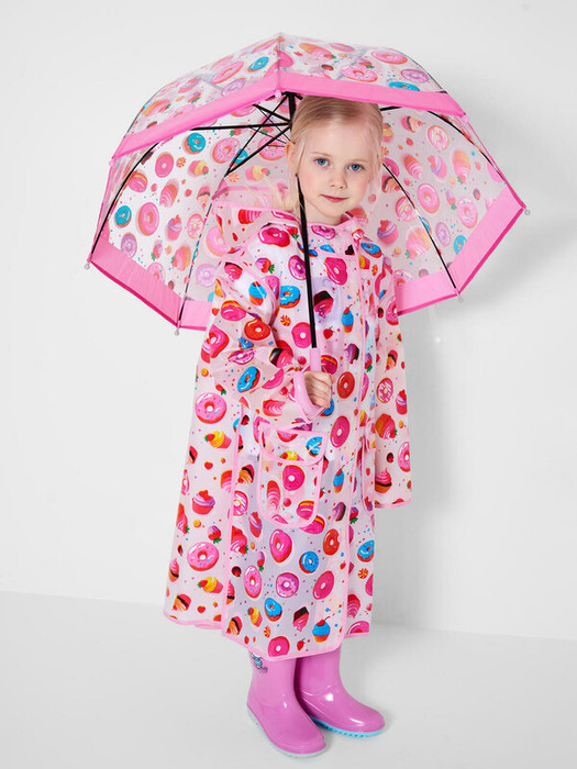 Яркий позитивный дождевик детский с козырьком для девочки. Застежка на кнопки. Материал ЭВА. Без подкладки. Модель имеет спереди два накладных кармана с клапаном. Сзади заложена широкая складка с клапаном с кнопкой на уровне талии для изменения объема плаща. Есть светоотражающие элементы спереди и сзади. Добавлена петелька под капюшоном с внешней стороны, чтобы остальные вещи на вешалке не намокали. Модель идеально сочетается с резиновыми сапогами и зонтом из коллекции. В комплекте идет непромокаемая сумочка.