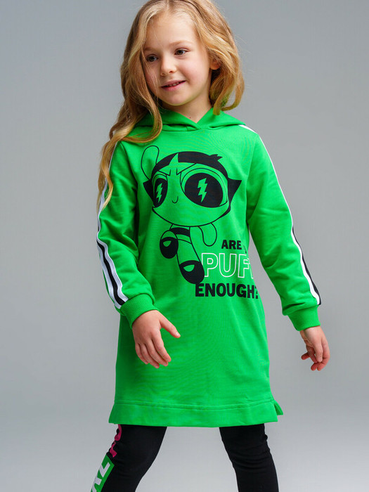 Платье из french terry с капюшоном. Манжеты в эластичный рубчик.