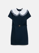 Школьное платье для девочки подростка. Синее платье прямого силуэта из трикотажа идеально в школу. Платье для школы выполнено из ткани с высоким содержанием вискозы, что обеспечивает максимальный комфорт для школьницы во время занятий. Вискоза отличается высокой гигроскопичностью - она впитывает влагу и отлично сохраняет тепло. Платье имеет застежку на молнию.