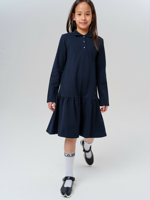 Темно-синее школьное трикотажное платье поло для девочки-подростка