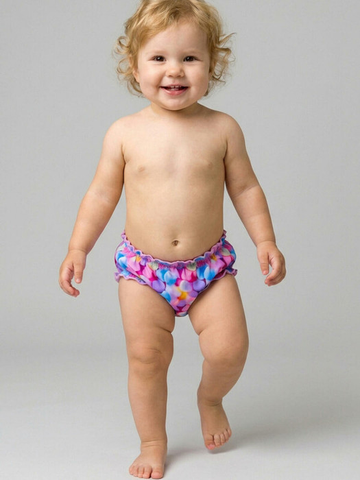 Детские плавки для девочки. Модель с красочным принтом в виде маршмеллоу и высокой посадкой. Внутри предусмотрена подкладка. Края обработаны мягкой эластичной тесьмой и декоративной строчкой. Эластичная отделка по талии и ножкам обеспечивает удобство и хорошую посадку.