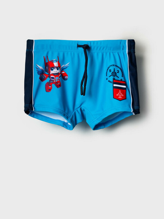 Плавки-шорты детские короткие, прилегающего силуэта для мальчика. Изготовлены из эластичного трикотажа, с подкладкой для большего комфорта. Ткань устойчива к солнцу и солёной воде, благодаря UF-защите сохраняет насыщенность цвета и структуру волокон. В поясе — удобная резинка и регулируемый шнурок.
