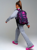 Трехсекционный рюкзак с ортопедической спинкой для девочки школьницы. Конструкция ортопедической вентилируемой спинки обеспечивает максимальный комфорт и позволяет снизить нагрузку на спину школьников и дошкольников. Широкие мягкие вентилируемые лямки регулируются по высоте, что делает рюкзак идеальным как для первоклассника, так и для детей из средней школы. Спереди лямки можно закрепить на застежку, чтобы они не спадали. Дно имеет уплотнительный вкладыш, который при необходимости можно не использовать. Снизу дна имеются резиновые "ножки", чтобы низ рюкзака не пачкался. Рюкзак имеет два основных отделения на молнии один большой карман спереди. Внутри имеется несколько отделений и кармашков для систематизации школьных принадлежностей. По бокам есть карманы: один - сетчатый, второй - на молнии. У рюкзака есть две ручки: одна - мягкая вентилируемая ручка для ношения в руках, вторая маленькая - для того, чтобы рюкзак можно было вешать на вешалку. Модель выполнена из водонепроницаемой ткани. Ранец имеет светоотражающие детали на лямках, по бокам, на переднем отделении, чтобы ребенка было хорошо видно в темноте со всех сторон. В подарок идет пластиковый чехол для пропуска на растягивающейся пружине. Пружина дает возможность спокойно приложить пропуск к турникету не снимая рюкзак. Рюкзак в школу можно дополнить мешком для обуви и пеналом в том же дизайне. Размер рюкзака: 29*38*19 см. Вес рюкзака: 630 гр