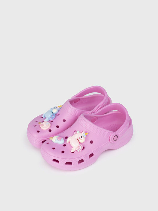 Сабо детские для девочки. Сабо из облегченного и прочного ЭВА. Материал хорошо моется. Модель украшена джибицами единорогами. Форма модели учитывает эргономику стопы. Модель имеет перекидной ремешок для лучшей фиксации обуви на ноге. Благодаря вентиляционным отверстиям сабо проветриваются, ноги ребенка дышат и не потеют.