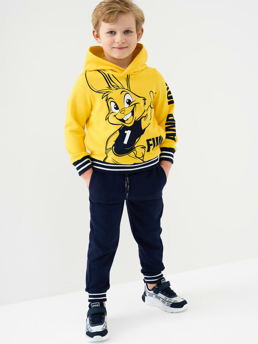 Худи детское для мальчика. Выполнено из хлопкового футера без начеса. На груди и рукавах — красочный принт. Капюшон. Манжеты и низ изделия выполнены из эластичного риба, что обеспечивает комфортную посадку.