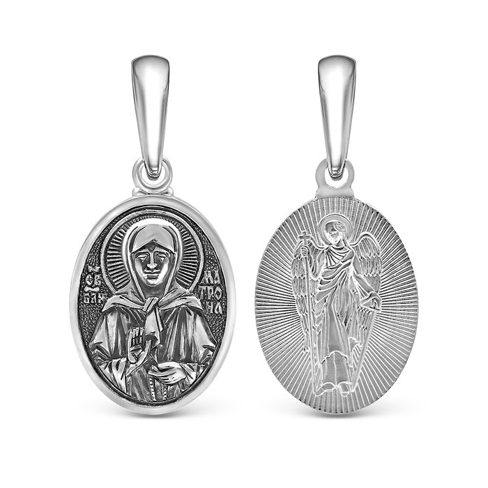 Подвеска-икона из чернёного серебра - св.Матрона 925 пробы и-05-41ч Матрона