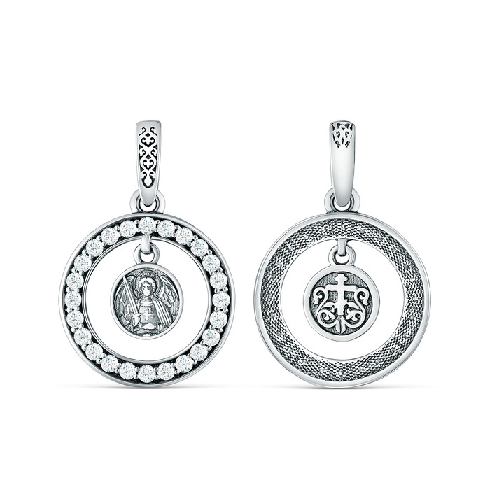 Подвеска из чернёного серебра с фианитами - Ангел хранитель 925 пробы 3-620ч
