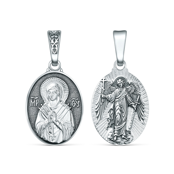 Подвеска из чернёного серебра - Семистрельная Божья Матерь, Ангел Хранитель п-04