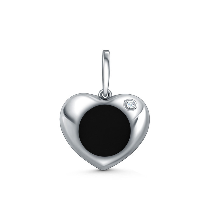 Совместные покупки Омск Ювелирные украшения и бижутерия Подвески — Подвеска из серебра с чёрным агатом и фианитом родированная - Сердце П-2689-Р-Ча