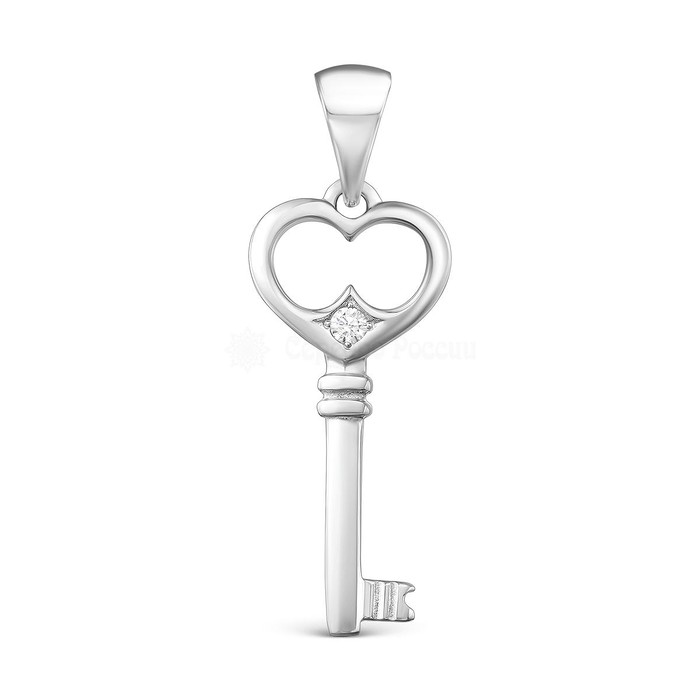 Подвеска из серебра с фианитом родированная - Ключ