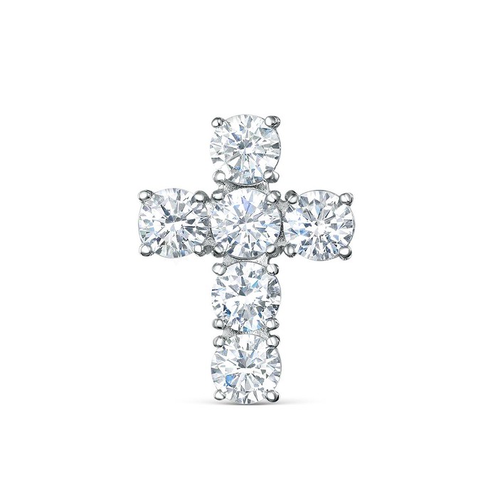 Подвеска крест из серебра с фианитами родированная