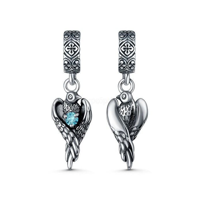 Совместные покупки Омск Ювелирные украшения и бижутерия Подвески — Подвеска религиозная из чернёного серебра с голубым фианитом - Голубь (символ Св