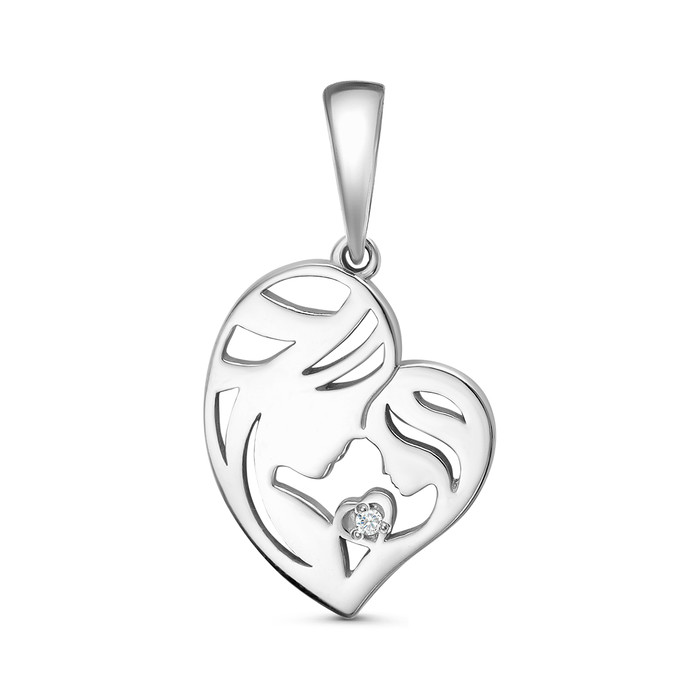 Совместные покупки Омск Ювелирные украшения и бижутерия Подвески — Подвеска сердце из серебра с фианитом родированная - Мать и дитя 925 пробы 13-03