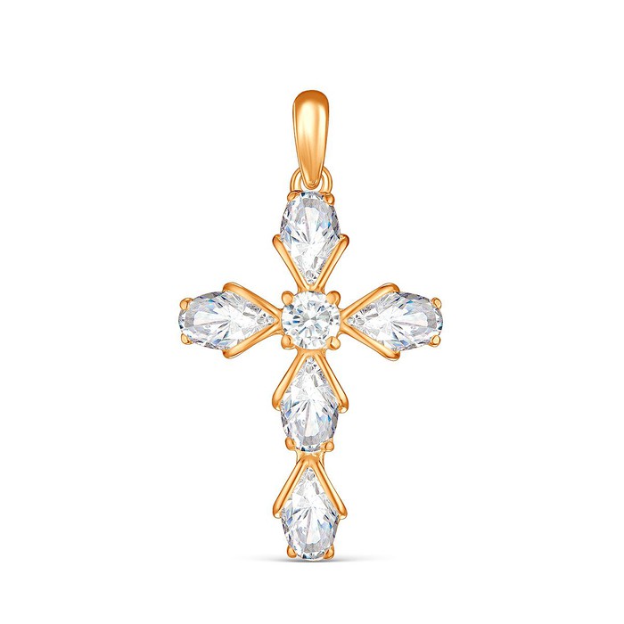 Совместные покупки Омск Ювелирные украшения и бижутерия Подвески — Подвеска в виде креста из золочёного серебра с фианитами