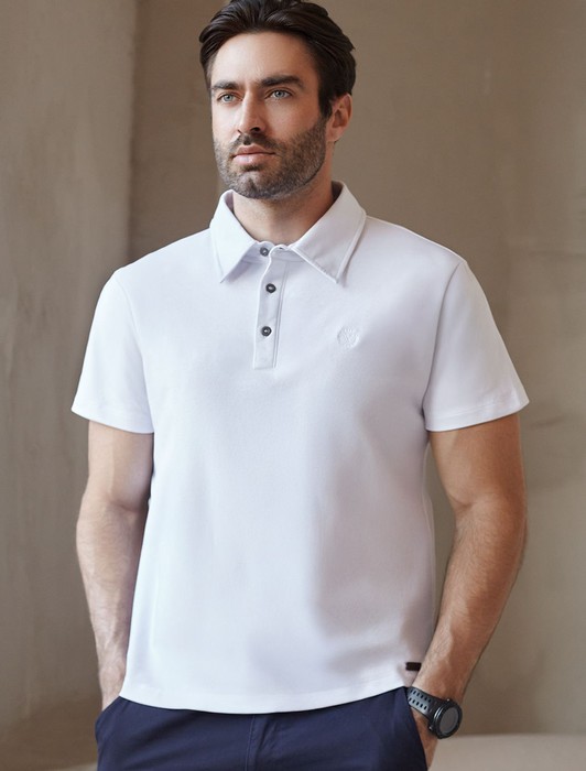 Состав: 92%Хлопок 8%ПУ Плотность: 170 Г/м2Поло выполнено из фактурного хлопка, которое обеспечивает комфорт даже в жаркое время года и почти не мнется. Застежка на матовые серебряные пуговицы с логотипом бренда. Преимущество изделия — это добавление эластана в классический для поло материал «пике», что гарантирует безупречный комфорт и долговечность. Поло сочетается в паре со светлым денимом и чиносами, в офис с черными брюками.
