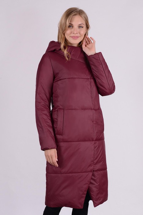 Стильное демисезонное  полупальто с застежкой на молнию и потайные кнопки, с воротником переходящим в капюшон. Оригинальные линии стёжки стройнят фигуру. Силуэт прямой, линия низа фигурная. Удобные прорезные карманы с листочкой. Длина пальто по спинке ок.104см. Длина рукава ок.64 см. Рост 170 см Состав: полиэстер - 100%, утеплитель: Air Twin Light 100 г/m 2 Цвет бордо Цвет одежды на фото может незначительно отличаться от оригинала.